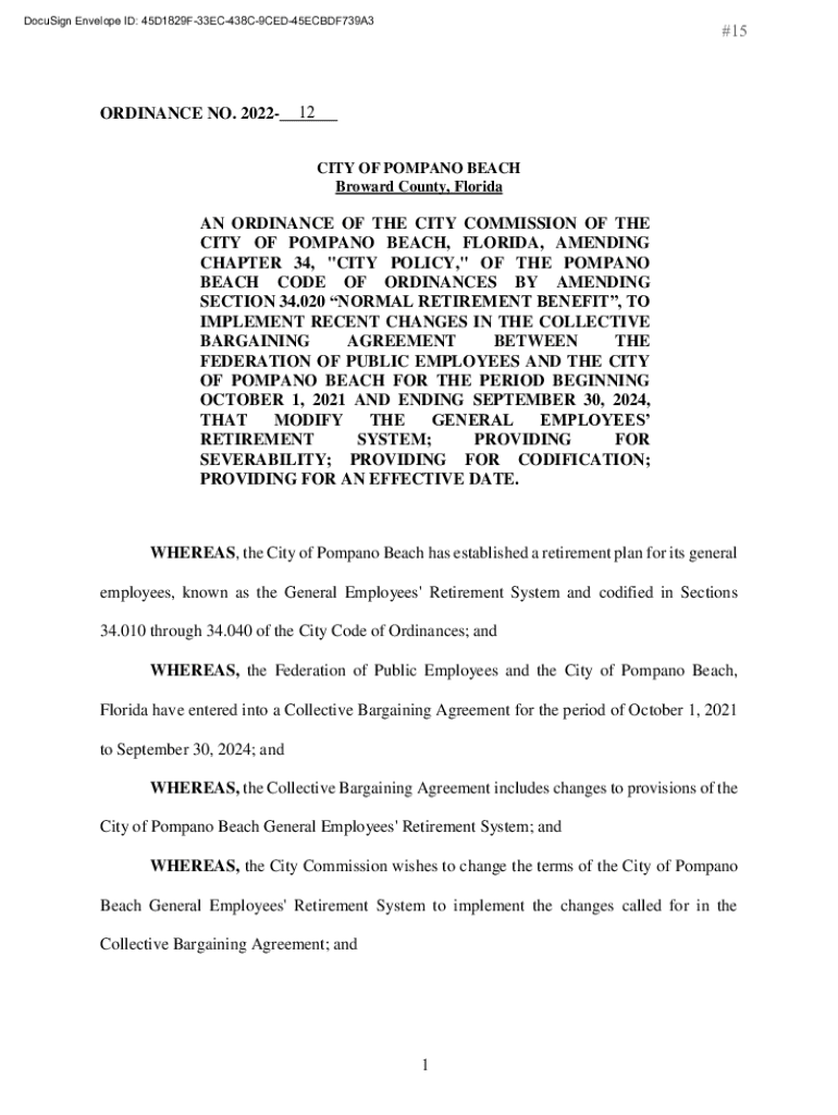 DocuSign Envelope ID: 45D1829F33EC438C9CED45ECBDF739A3#1512 ORDINANCE NO. 2022___ CITY OF POMPANO BEACH Broward County, Floridian ORDINANCE OF THE CITY COMMISSION OF THE CITY OF POMPANO BEACH, FLORIDA,
