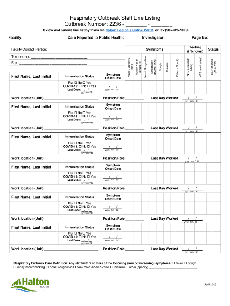 Get the free RESPIRATORY OUTBREAK LINE LISTING FORM ...