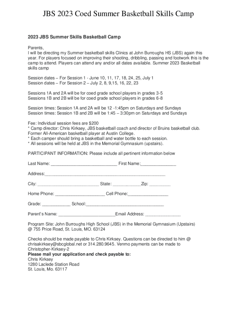 I will be directing my Summer basketball skills Clinics at John Burroughs HS (JBS) again this