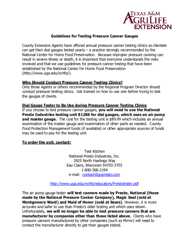 Get the free Time to Test Pressure Canner Dial Gauges and Check Out the ...