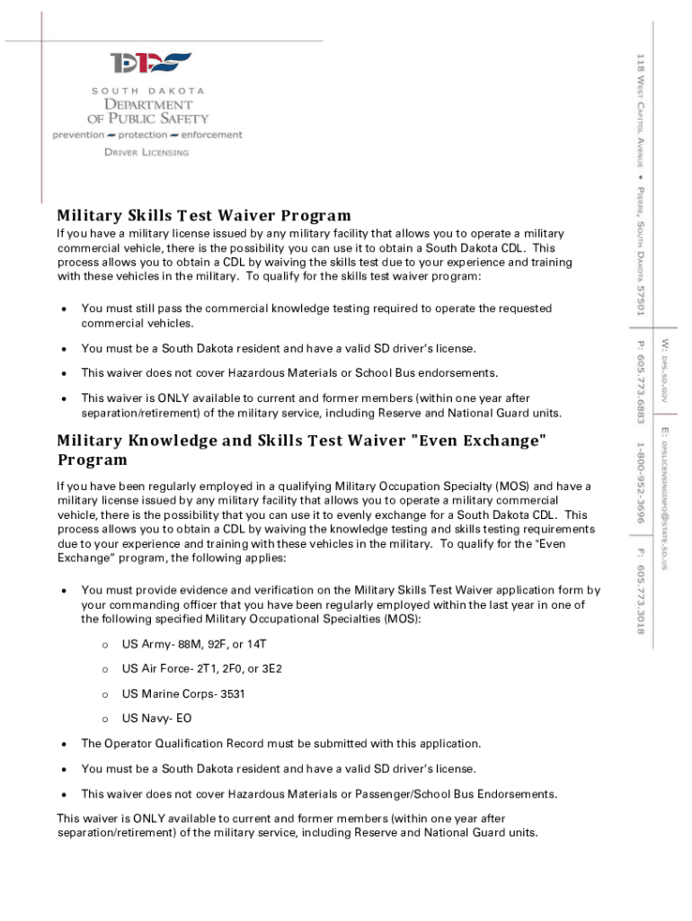 Military Skills Test Waiver Program If you have a military license issued by any military facility that allows you to operate a military commercial vehicle, there is the possibility you can use it