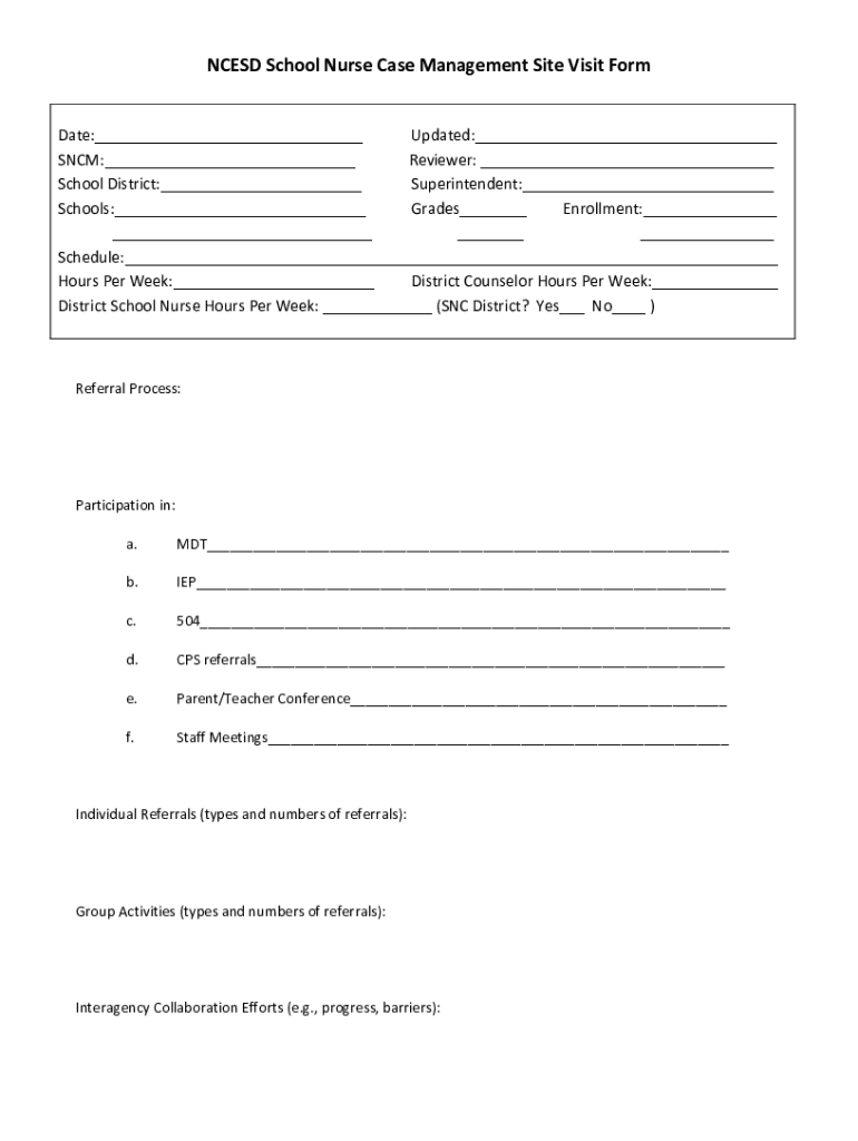 Get the free NCESD School Nurse Case Management Site Visit Form