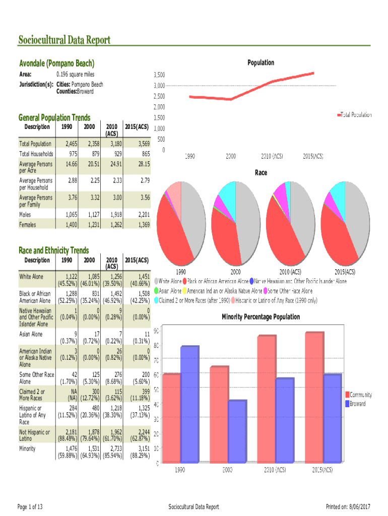 Sociocultural Data Report Population Avondale (Pompano Beach) Area: 0.196 square miles Jurisdiction(s): Cities: Pompano Beach Counties:BrowardGeneral Population Trends Description Total Population