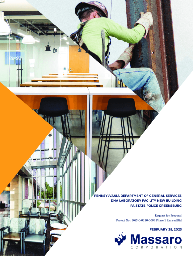 PENNSYLVANIA DEPARTMENT OF GENERAL SERVICES DNA LABORATORY FACILITY NEW BUILDING PA STATE POLICE GREENSBURG Requests for Proposal Project No.: DGS C02100004 Phase 1 Revised Bid FEBRUARY 28, 2023TABLEOFCONTENTSPENNSYLVANIA