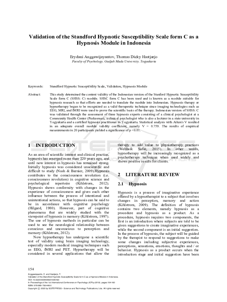 Get the free Validation of the Standford Hypnotic Susceptibility Scale form C as a ...