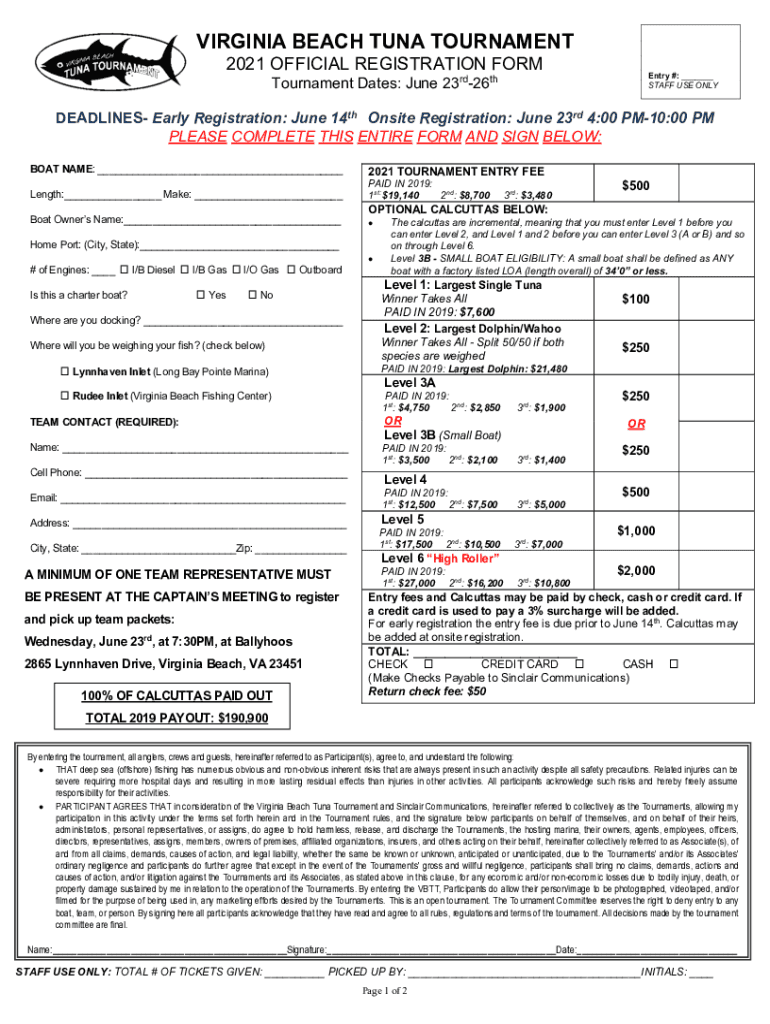 Get the free virginia beach tuna tournament - 2021 official registration form
