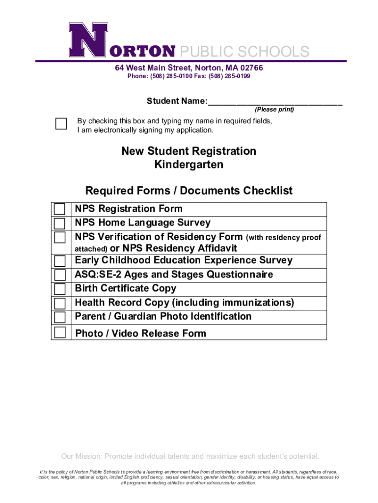NORTON PUBLIC SCHOOLS 64 West Main Street, Norton, MA 02766 Phone: (508) 2850100 Fax: (508) 2850199Student Name:___ (Please print)By checking this box and typing my name in required fields, I am electronically