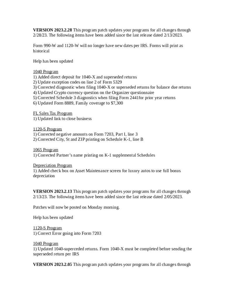 What is 28 This program patch updates your programs for all changes through 2/28/23 Form?