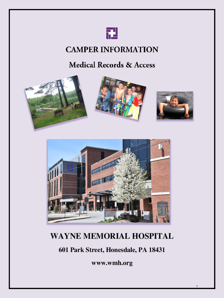 WAYNE MEMORIAL HOSPITAL 601 Park Street, Hones dale, PA 18431 www.wmh.org1Dear Camper Family, Welcome to our corner of northeast Pennsylvania! As we approach another camp season here in Wayne County,