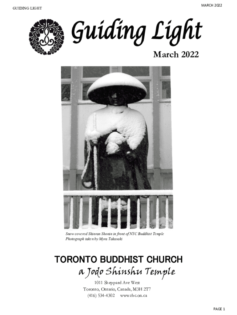 MARCH 2022GUIDING LIGHT March 2022Snow covered Shin ran Shōnen in front of NYC Buddhist Temple