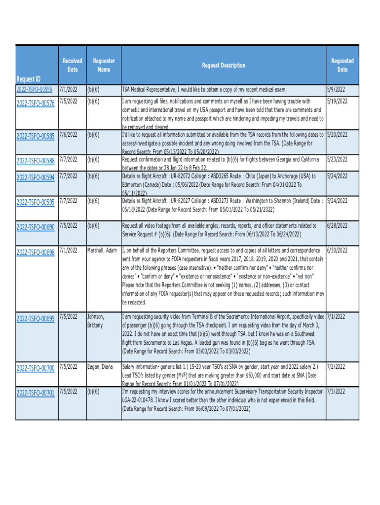 Get the free Request ID 2022-TSFO-00576 7/5/2022 2022-TSFO-00585 7/6 ...