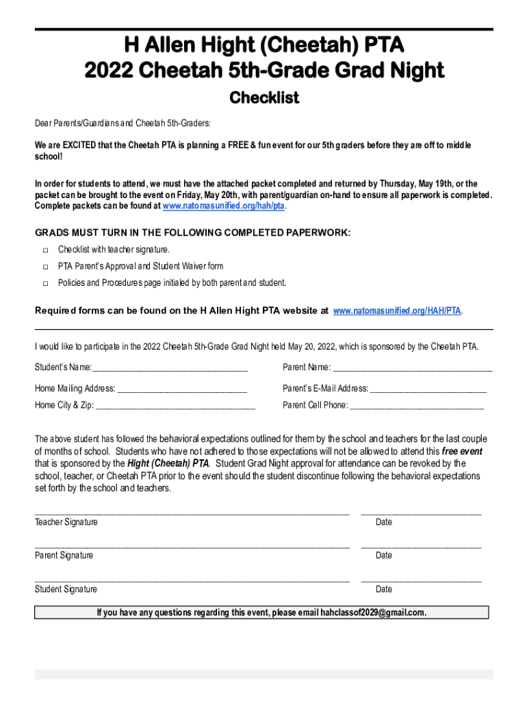 We are EXCITED that the Cheetah PTA is planning a FREE & fun event for our 5th