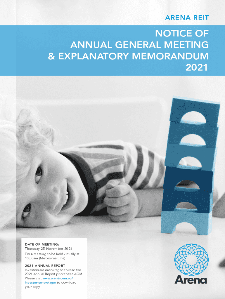ARENA REITNOTICE OF ANNUAL GENERAL MEETING & EXPLANATORY MEMORANDUM 2021DATE OF MEETING: Thursday 25 November 2021 For a meeting to be held virtually at 10.00am (Melbourne time) 2021 ANNUAL REPORT