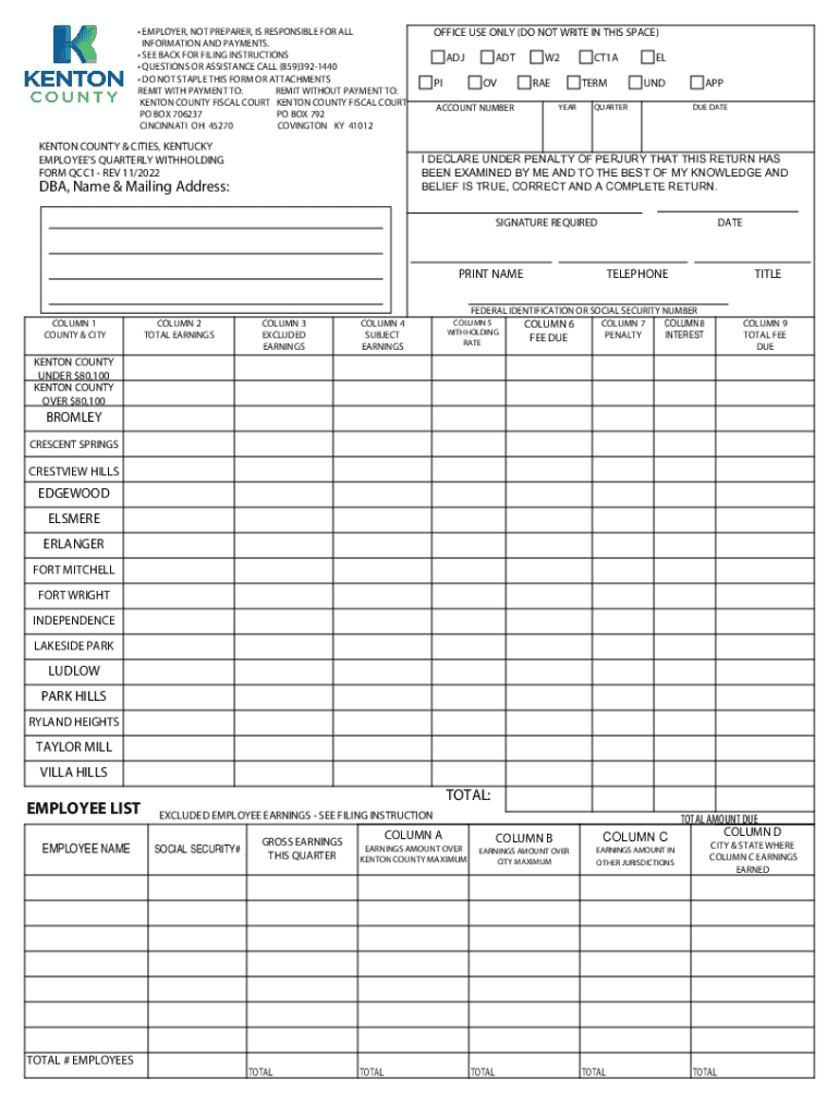 OFFICE USE ONLY (DO NOT WRITE IN THIS SPACE) EMPLOYER, NOT PREPARER, IS RESPONSIBLE FOR ALL INFORMATION AND PAYMENTS. SEE BACK FOR FILING INSTRUCTIONS QUESTIONS OR ASSISTANCE CALL (859)3921440 DO