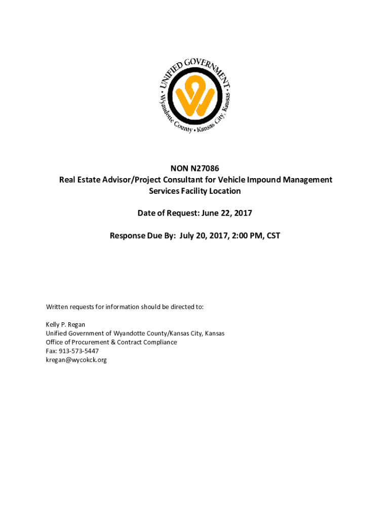 NON N27086 Real Estate Advisor/Project Consultant for Vehicle Impound Management Services Facility Location Date of Request: June 22, 2017, Response Due By: July 20, 2017, 2:00 PM, Co-written requests