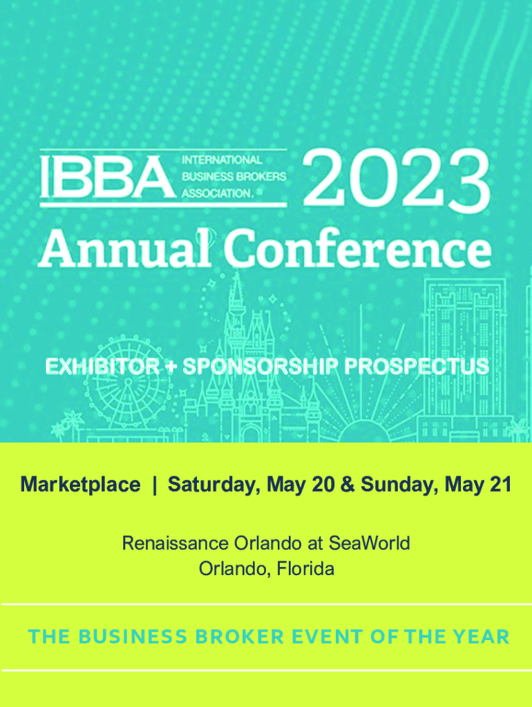 EXHIBITOR + SPONSORSHIP PROSPECTUSMarketplace | Saturday, May 20 & Sunday, May 21 Renaissance Orlando at SeaWorld Orlando, Florida the business broker event of the year 1www.BBA.org2WHO IS BBA? The