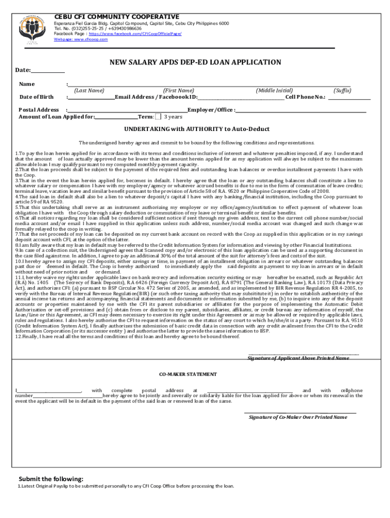 Get the free NEW SALARY APDS DEP-ED LOAN APPLICATION