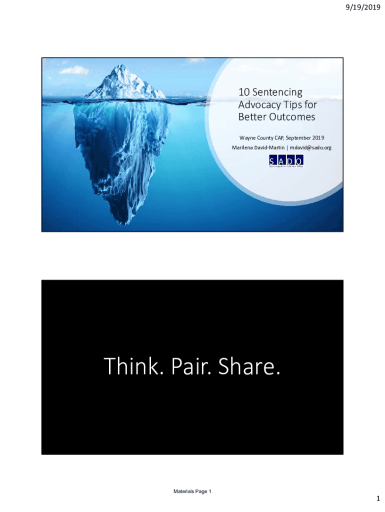 MarilenaDavidMartin|mdavid@sado.orgThink. Pair. Share. Materials Page 119/19/2019WhatisSentencingMitigation? The action