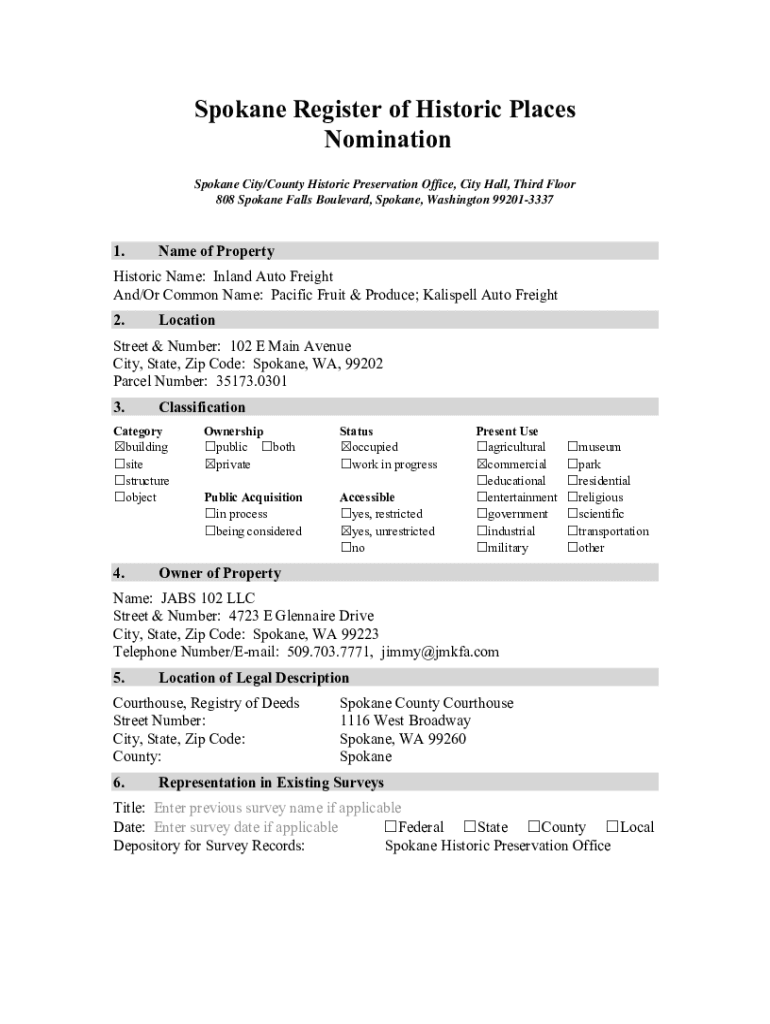 Get the free Historic Name: Inland Auto Freight - properties historicspokane