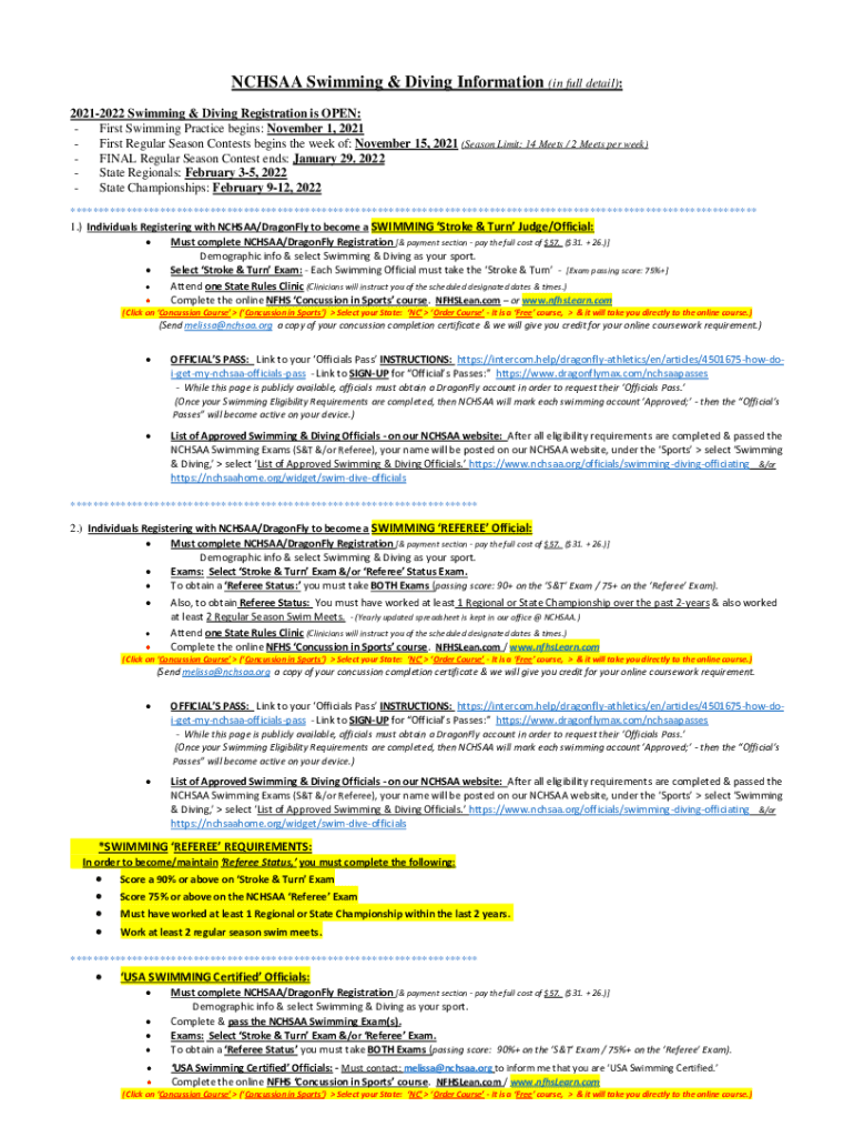 High school swim teams and athletes who wish to compete in the nchsaa swimming state championship are required to file.