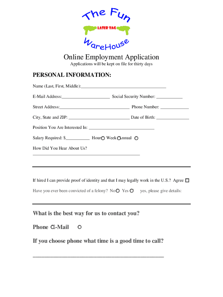 Applications will be kept on file for thirty daysPERSONAL INFORMATION:
