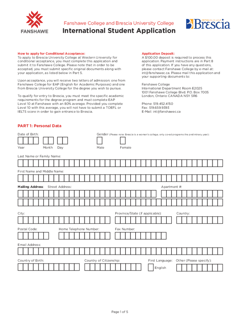Fanfare College and Brescia University CollegeInternational Student Application to apply for Conditional Acceptance: To apply to Brescia University College at Western University for conditional acceptance,