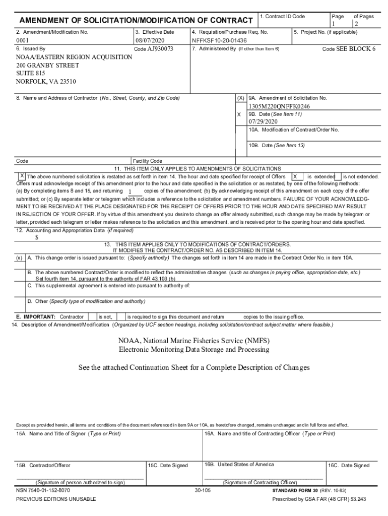 AMENDMENT OF SOLICITATION/MODIFICATION OF CONTRACT 2. Amendment/Modification No.3. Effective Date000108/07/2020 Code AJ9300736. Issued By1. Contract ID Code4. Requisition/Purchase Req. No. Page of