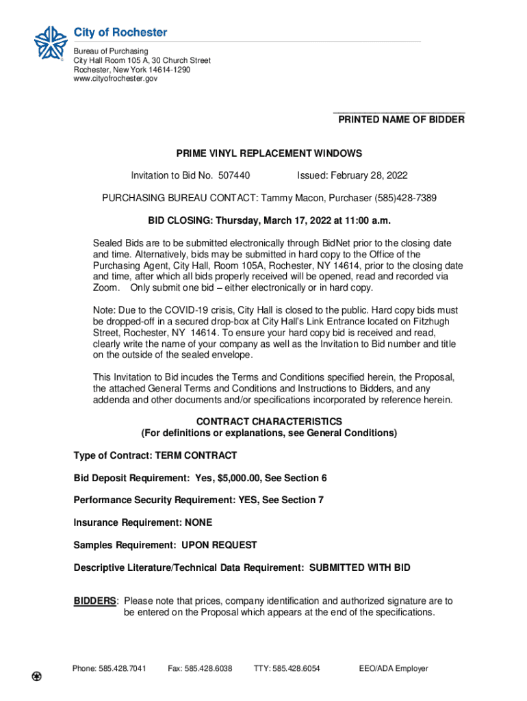 Get the free Bureau of Purchasing City Hall Room 105 A, 30 Church ...