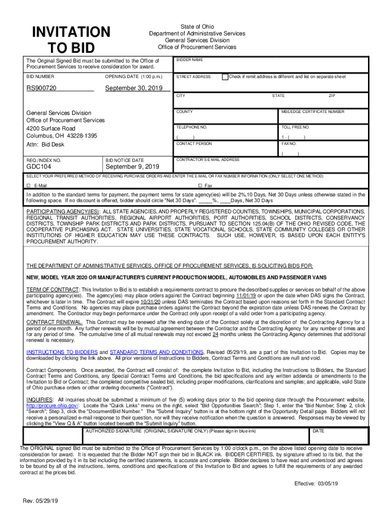 Office of Procurement Services Original Signed Bid must be submitted to the Office of