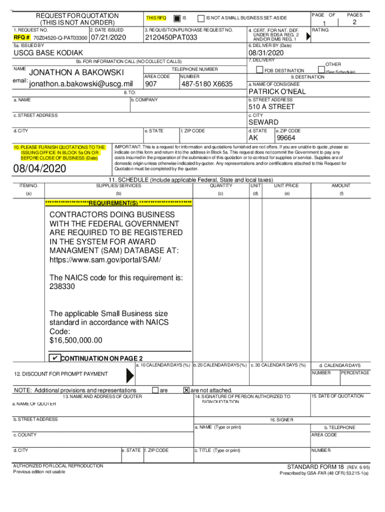 How to fill out rfq 70z04520-q-pat03300