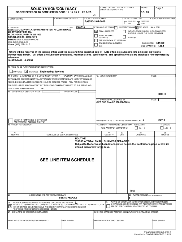 Obtain a copy of the solicitation contract form.