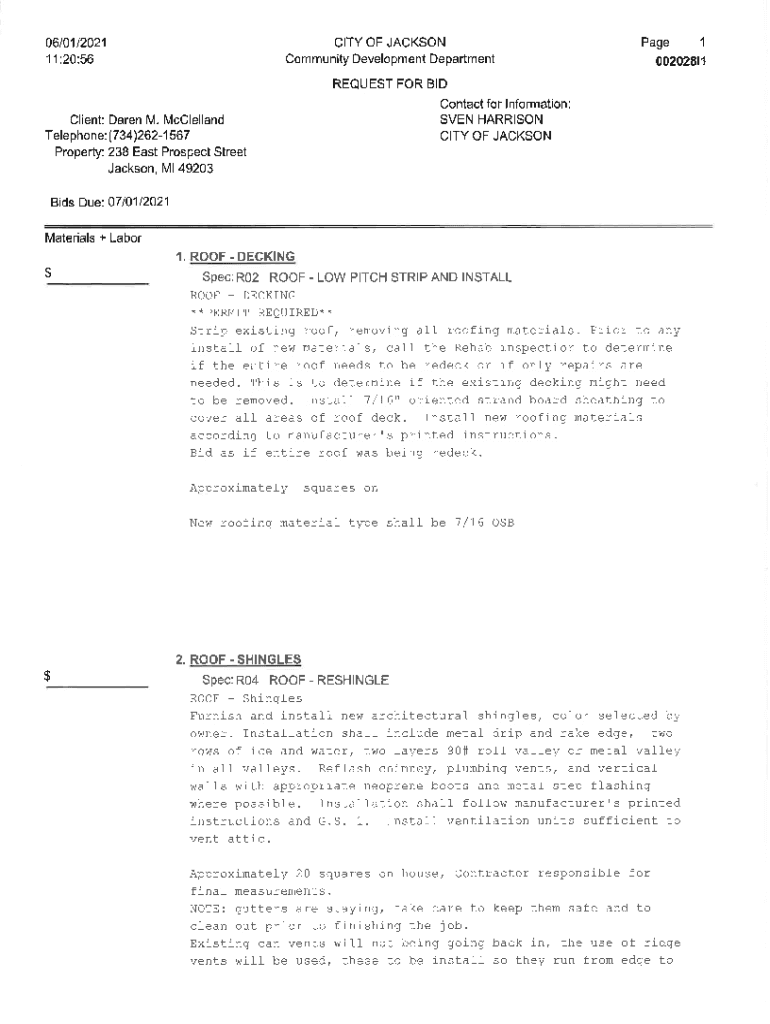 CITY OF JACKSONBORO REPLACEMENT, INSTALLATION OF TWO DOORS AND REPLACEMENT OF PRECAST STEPS AT 238 E. PROSPECT BID RESPONSES DUE: TUESDAY, JUNE 15, 2021, 9:00:00 AM CONTENTS INVITATION FOR BIDS INSTRUCTIONS