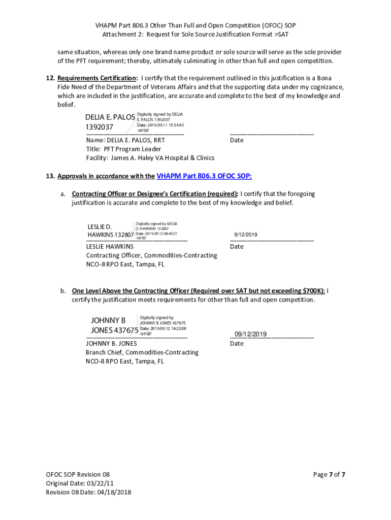 VH APM Part 806.3 Other Than Full and Open Competition (OFAC) SOP Attachment 2: Request for Sole Source Justification Format DEPARTMENT OF VETERANS AFFAIRS Justification and Approval (J&A) For Other