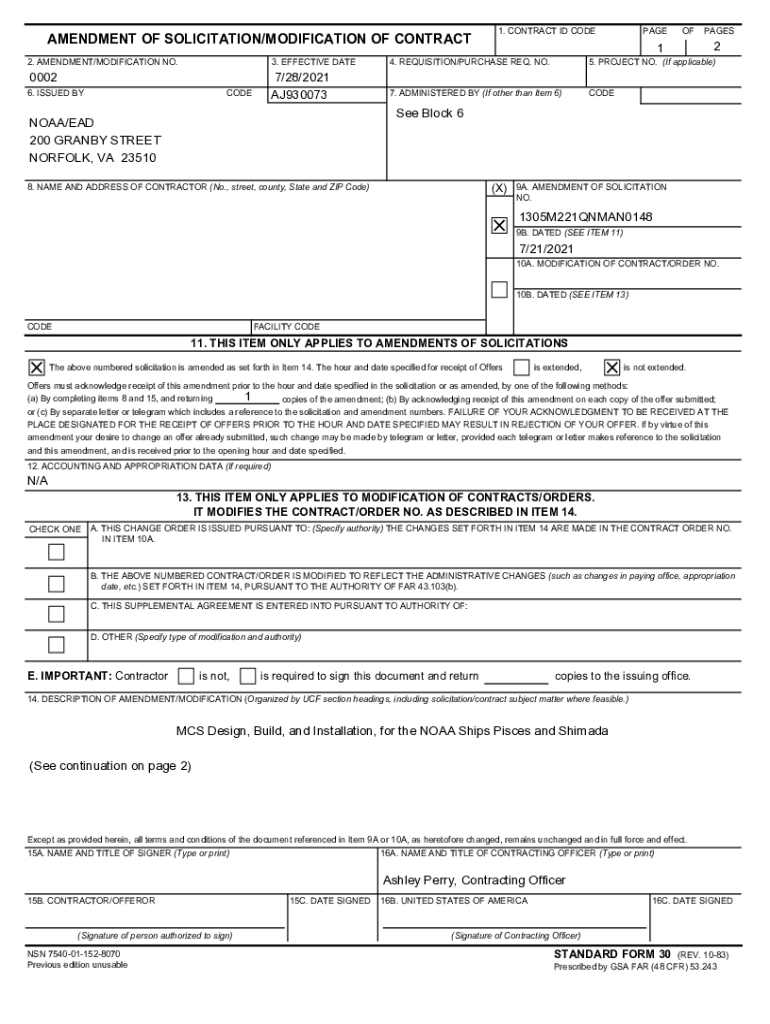 AMENDMENT OF SOLICITATION/MODIFICATION OF CONTRACT 2. AMENDMENT/MODIFICATION NO.0002 6. ISSUED BYCODE1. CONTRACT ID CODEPAGEOF1PAGES23. EFFECTIVE DATE4. REQUISITION/PURCHASE REQ. NO.5. PROJECT NO.