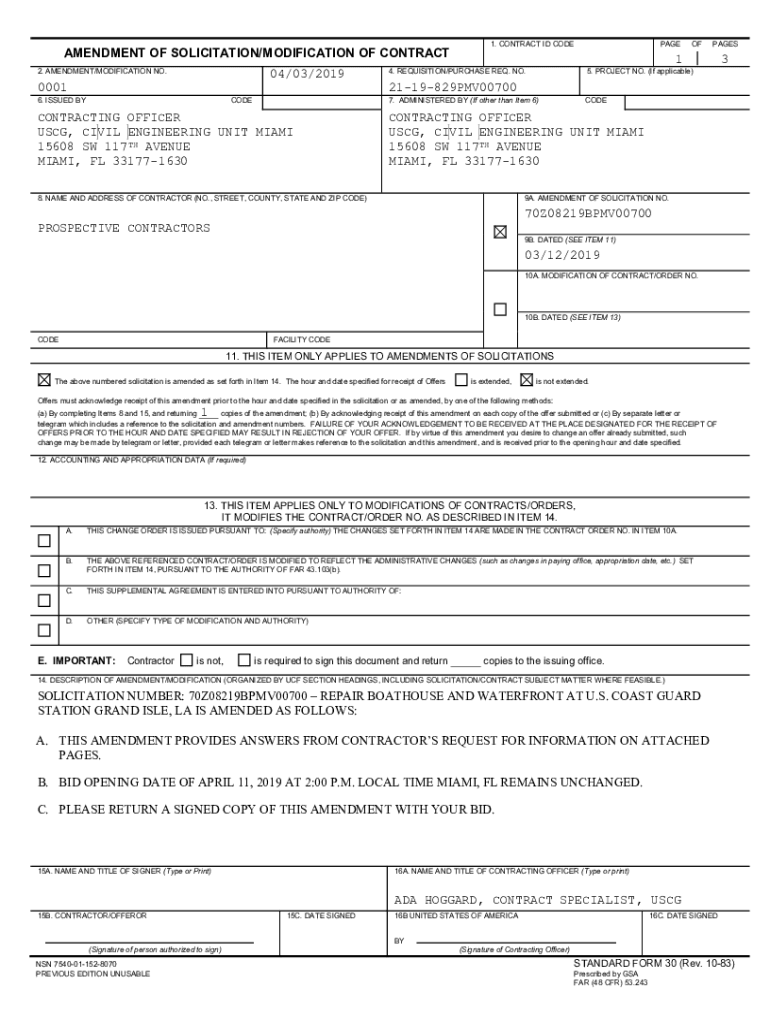 AMENDMENT OF SOLICITATION/MODIFICATION OF CONTRACT 04/03/20192. AMENDMENT/MODIFICATION NO.00016. ISSUED BYCODE1. CONTRACT ID CODEOFPAGES14. REQUISITION/PURCHASE REQ. NO.5. PROJECT NO. (If applicable)2119829PMV007007.