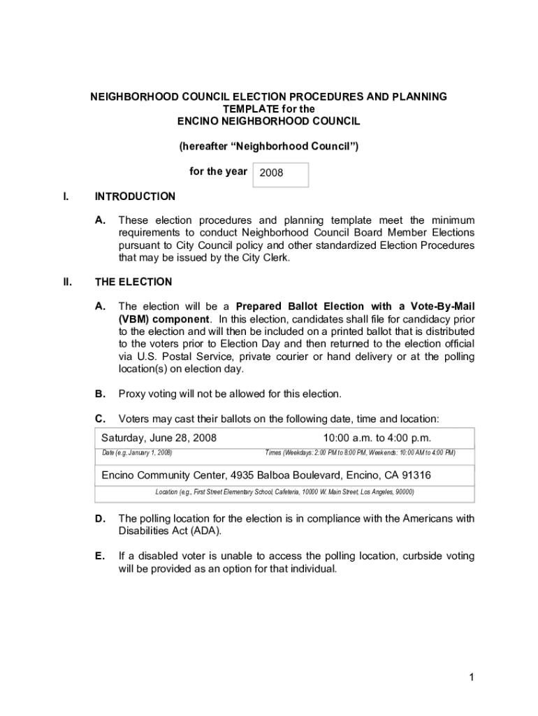 Get the free 1 NEIGHBORHOOD COUNCIL ELECTION PROCEDURES ... - cityclerk lacity