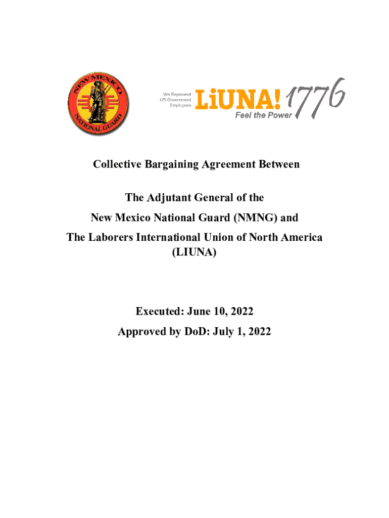 Collective Bargaining Agreement Between The Adjutant General of the New Mexico National Guard (MNG) and The Laborers International Union of North America (LUNA)Executed: June 10, 2022, Approved by