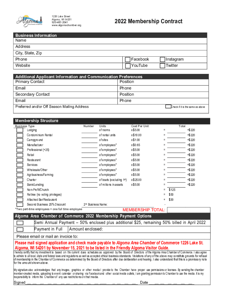 www.algomachamber.org2022 Membership ContractBusiness Information