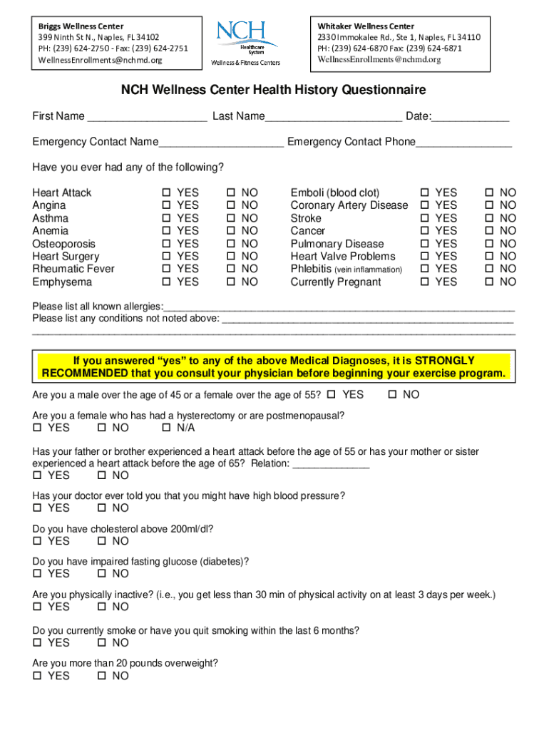 Briggs Wellness Center 399 Ninth St N., Naples, FL 34102 PH: (239) 6242750 Fax: (239) 6242751 WellnessEnrollments@nchmd.orgWhitaker Wellness Center 2330 Immoral Rd., Ste 1, Naples, FL 34110 PH: (239)