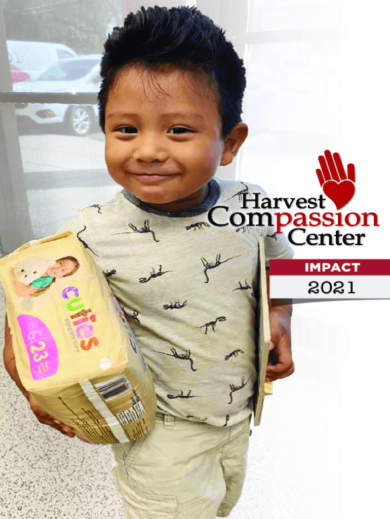 IMPACT20212IMPACT REPORT2021YEAR IN REVIEWHarvest Compassion Center served our very first client almost 12 years ago. His name was Peter. We offered Peter food, clothing, and hygiene items. More importantly,