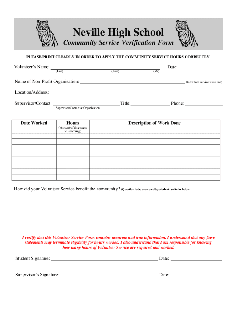 Community Service Verification Form