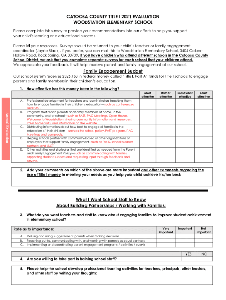 Get the free Parent Engagement - Catoosa County Public Schools