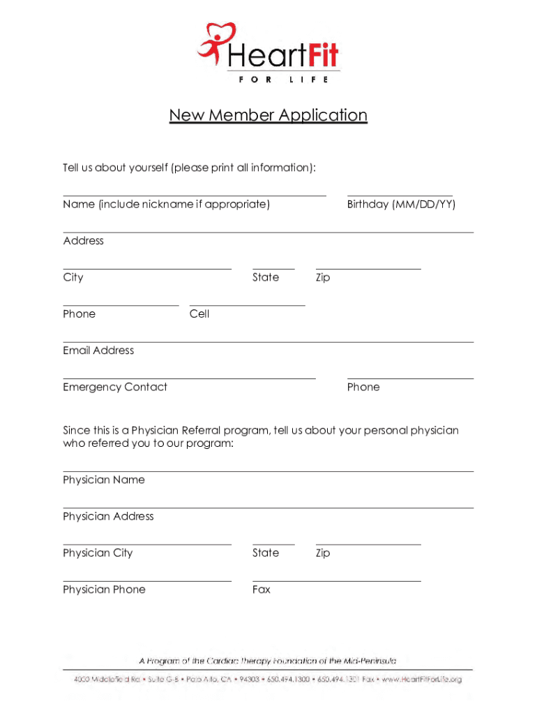 Get the free New Member ApplicationHeartFit For Life No Yellow.docx