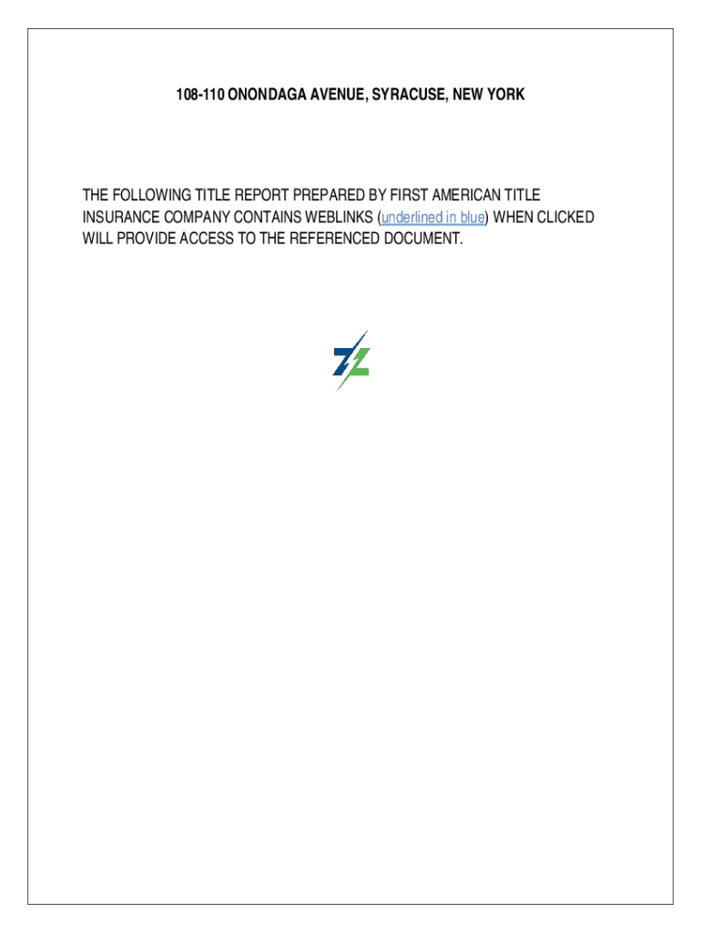 108110 ONONDAGA AVENUE, SYRACUSE, NEW YORKIE FOLLOWING TITLE REPORT PREPARED BY FIRST AMERICAN TITLE INSURANCE COMPANY CONTAINS WEBLINKS (underlined in blue) WHEN CLICKED WILL PROVIDE ACCESS TO THE