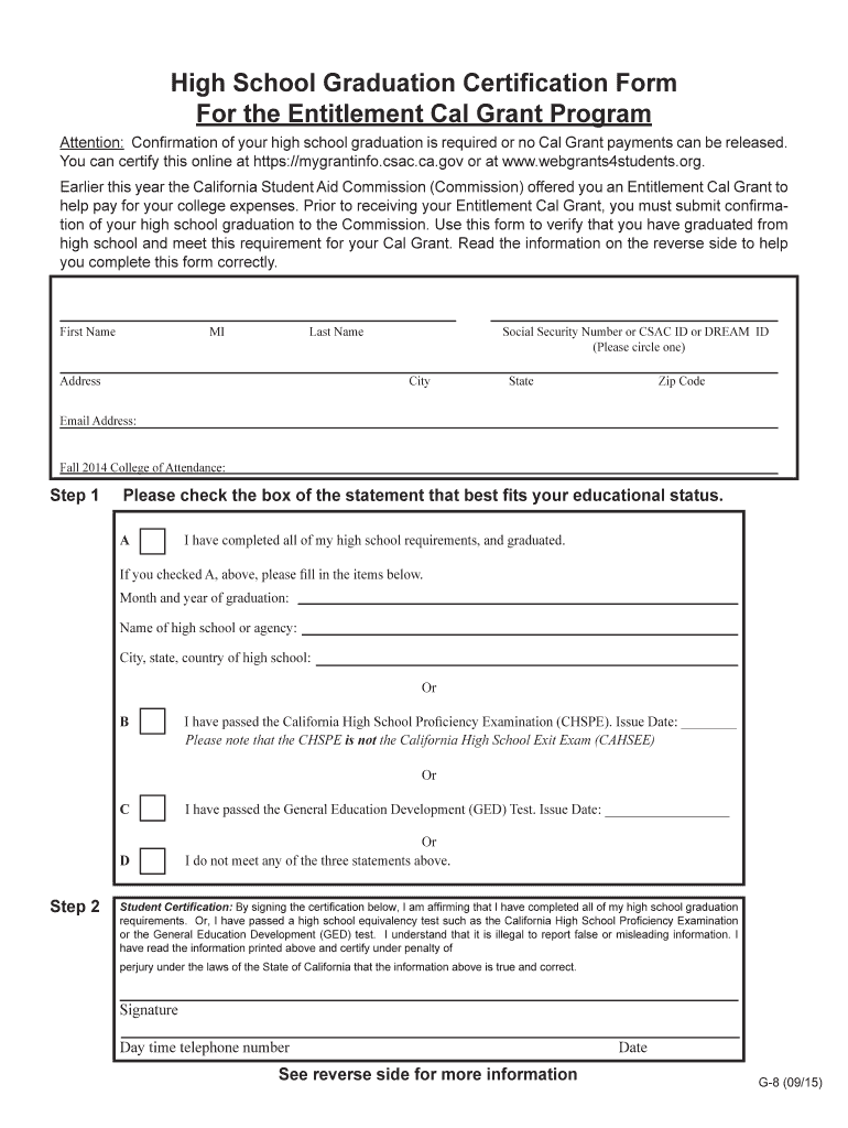 High School Graduation Certification Form