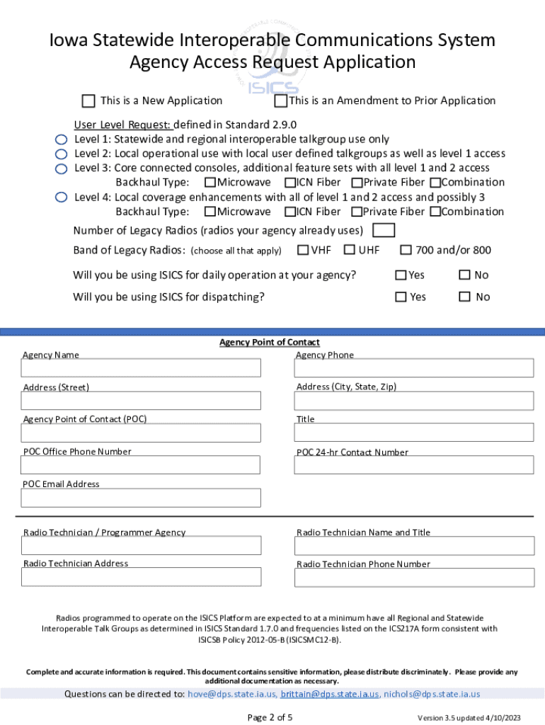 Iowa Statewide Interoperable Communications System Agency Access Request Application InstructionsResources for users or potential users of the Iowa Statewide Interoperable Communications System are