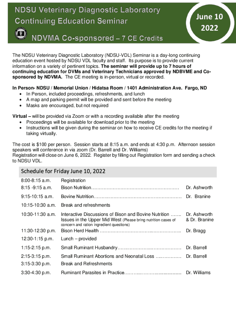 Email, fax, or share your ndsu veterinary diagnostic laboratory form via URL. You can also download, print, or export forms to your preferred cloud storage service.