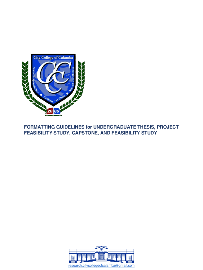 FORMATTING GUIDELINES for UNDERGRADUATE THESIS, PROJECT FEASIBILITY STUDY, CAPSTONE, AND FEASIBILITY STUDYresearch.citycollegeofcalamba@gmail.comI. Organization of the Manuscript existing parts according