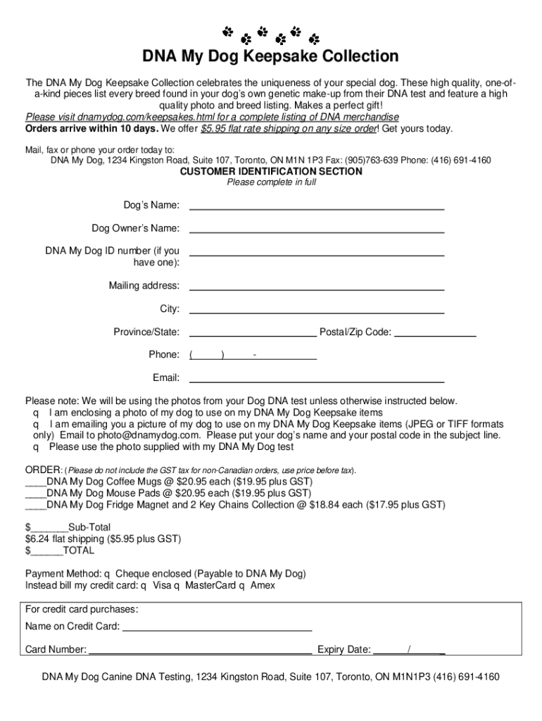 DNA My Dog Keepsake Collection The DNA My Dog Keepsake Collection celebrates the uniqueness of your special dog. These high quality, oneofakind pieces list every breed found in your dogs own genetic