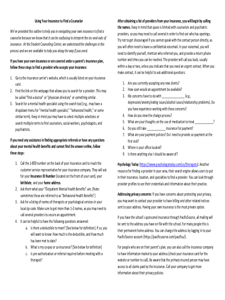 Get the free Using Your Insurance to Find a Counselor We've provided ...